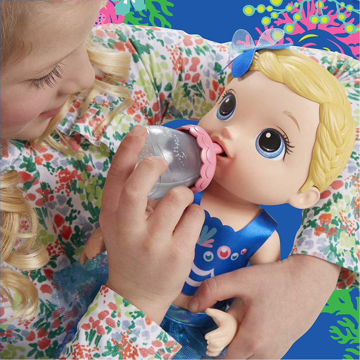 Sudan çıktığında da çocuklar bebeklerini biberonla besleyip bezini değiştirebiliyor. Kızlar Baby Alive Deniz Kızı Bebeğim ile oyunlar oynamayı çok sevecek.