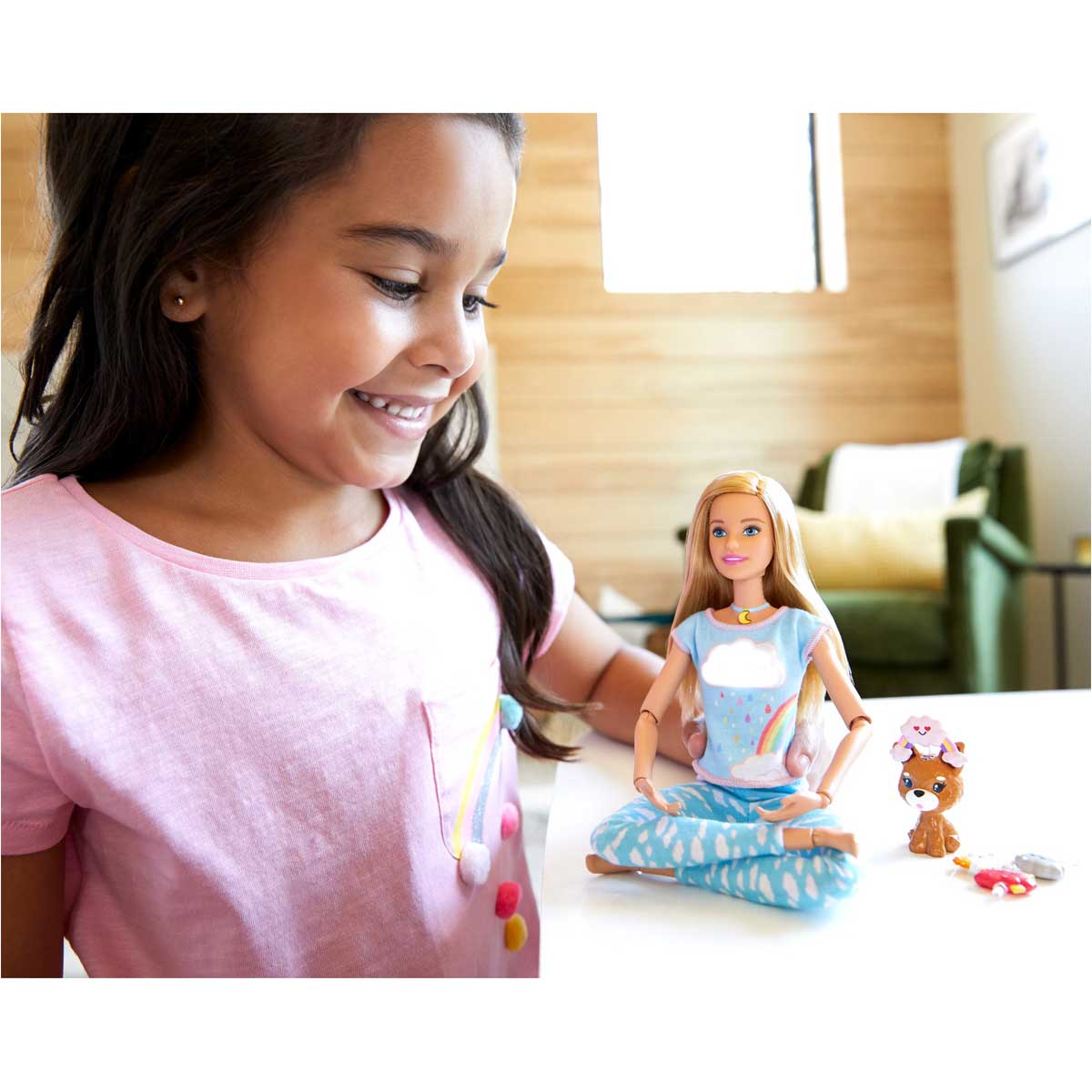 Kızlar Barbie bebeğin kolyesindeki düğmeye basarak beş rehberli meditasyon egzersizinden birini başlatır ve ses ışık efektlerinden ilham alarak kendi meditasyonlarını yapar. Bulut emojilerden birini başına yerleştirerek meditasyon düşüncesi bulutu oluştur.
